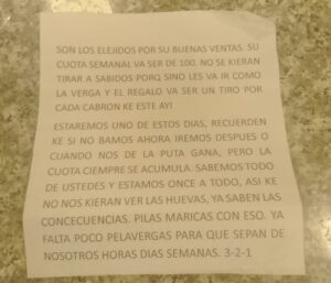 Añadió que, cuando los deudores no cumplen con los pagos, suelen recibir amenazas por parte de quienes otorgan estos préstamos ilegales. Asimismo, indicó que agentes policiales trabajan para identificar a los presuntos extorsionadores.